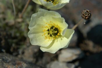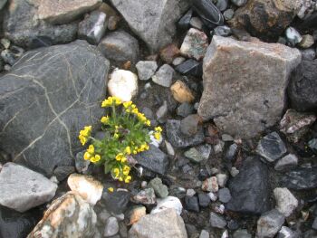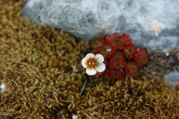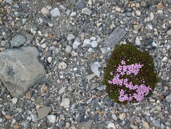 Voisi luulla, ettei karussa Huippuvuorten maisemassa mitään kasva, mutta niin vain on kukkalostoa - tosin miniatyyrikoossa.