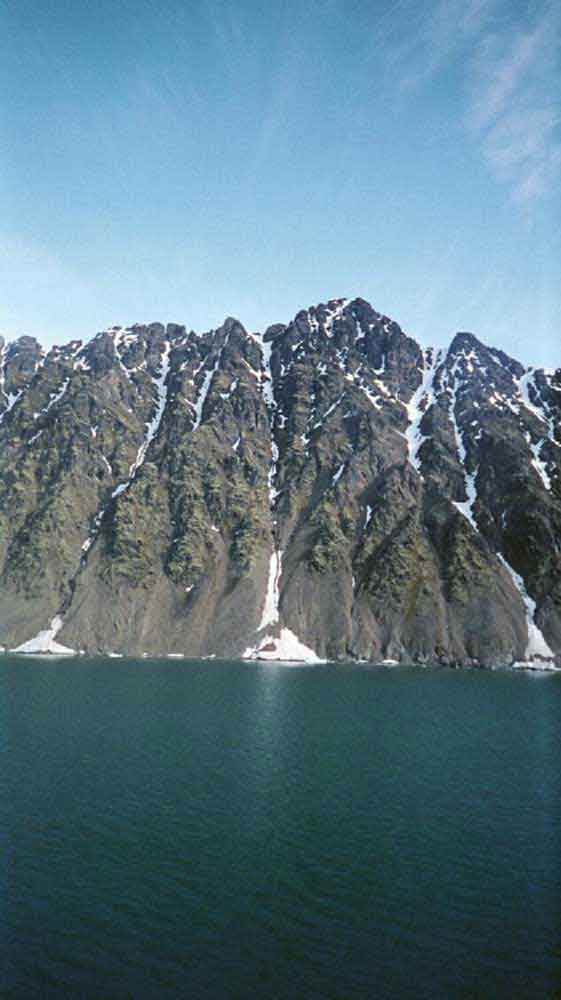 Komeita vuortenseinämiä ja pieniä jäävuoria