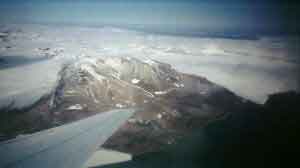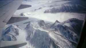 Huippuvuorten maisemaa lentokoneesta nähtynä
