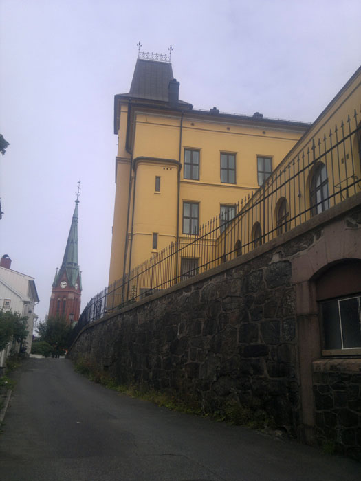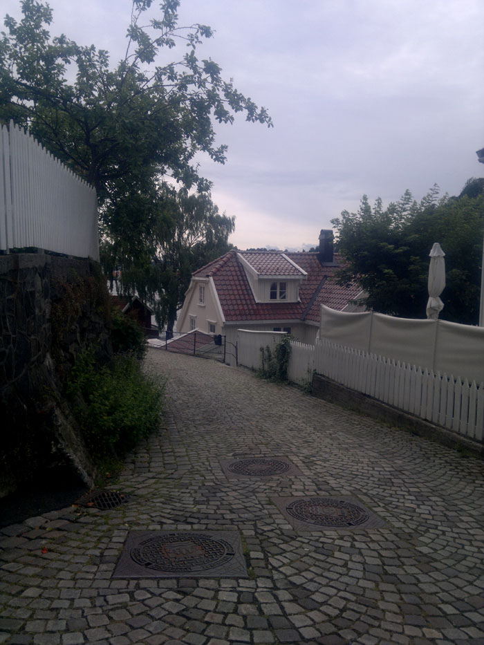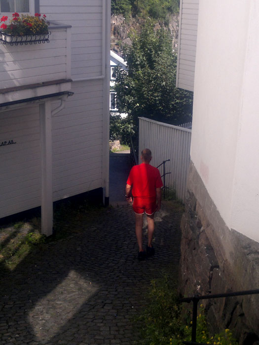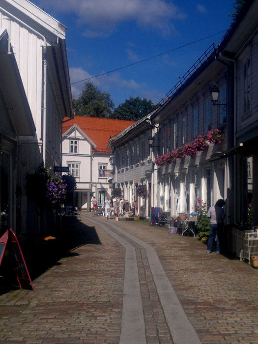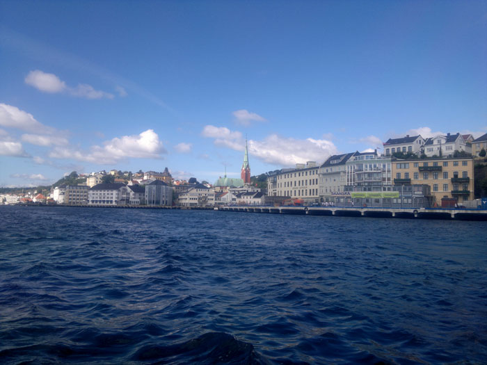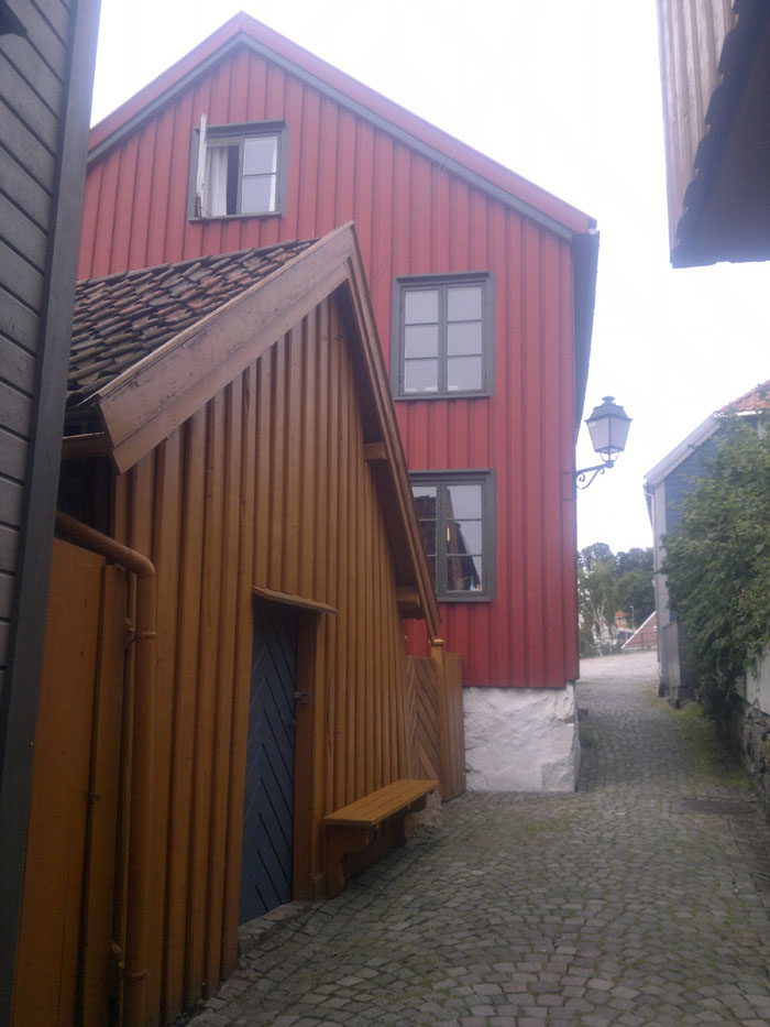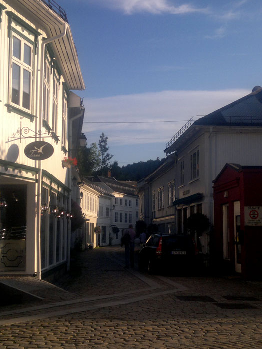 Arendal on iso moderni kivikylä, jonka näkymää hallitsee suuri kuparikattoinen, korkeatorninen punatiilikirkko toreineen. Mutta vierasvenerannalta pääsi myös katsastamaan vanhaa Arendalia. Vaikka keskikaupunki on aivan sataman tuntumassa meluineen ja hajuineen, löytyi vanhasta kaupunginosasta hiljaisuutta ja historiaa. Rannan tuntumassa on vanhoja hallintorakennuksia 1700-ja 1800-luvuilta, nyt todennäköisesti aivan muussa käytössä. Kaupunginosan tiet on päällystetty koristeellisella kiveyksellä, kujat ovat kapeita vain jalankulkijoita varten. Vanhat viemärikaivojen kannet ovat koristeelliset. Mielenkiintoinen yksityiskohta oli vanha lyseo, vieläkin käytössä kouluna.