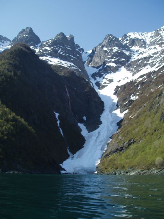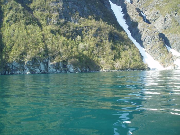 Jään sulamisvesi – breevann – muuttaa vuonon veden samean vihreäksi