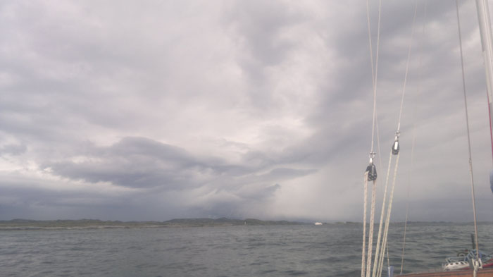 Pitkällä matkalla aina sattuu ja tapahtuu. Vaikka kuinka suunnittelisi matkaa turvallisuusnäkökohtia silmälläpitäen, ei koskaan voi ennustaa yllätyksiä. Storfosnasta lähdimme aamukymmeneltä tyynen ja lämpimän sään vallitessa. Pilveilyä kuitenkin oli jonkun verran vähän jokapuolella. Sääennusteen mukaan piti olla kevyttä pohjoisenpuoleista, mutta oli lähes pläkä keli, siksi päätimme kulkea suoraan Hitran saaren eteläreunaa. Saari on iso ja sen eteläreuna kolmisenkymmentä merimailia pitkä. Jotenkin tuntui keli siirappiselta, kostean seisovalta, eikä matkakaan tuntunut taittuvan 6 – 7 solmun nopeudesta huolimatta. Hitran ja Smølan välissä Tyrhaugin majakan (63°18 N; 08°13 E) kohdalla saatiin aurinkoa, mutta sekä edessä että takana kasaantui pahaenteisiä pilviä. Eikä aikaakaan, kun ukkosrintama oli edessämme ja sitten kohdalla. Onneksi juuri sillä kohdalla maiden puolella oli väylä, jonne puikahdimme. Tuntematon kapea väylä, salamat löivät maihin molemmilla puolilla ja ukkosen aiheuttama vastatuuli riepotti nousten välillä 22 solmuun. Jälleen oli uusista elektronisista kartoista hyötyä. Ukkonen meni menojaan, mutta jätti vielä jälkeensä maininkia aukolla ennen Kristiansundia (63°07 N).