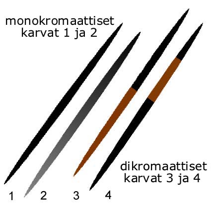 juuren ja latvan ollessa tummemmat. Monokromaattinen karvanväri